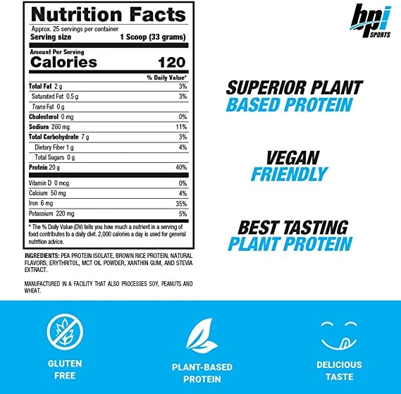 پروتئین وگان BPI از ایزوله نخود + پروتئین برنج قهوهای تشکیل شده است.