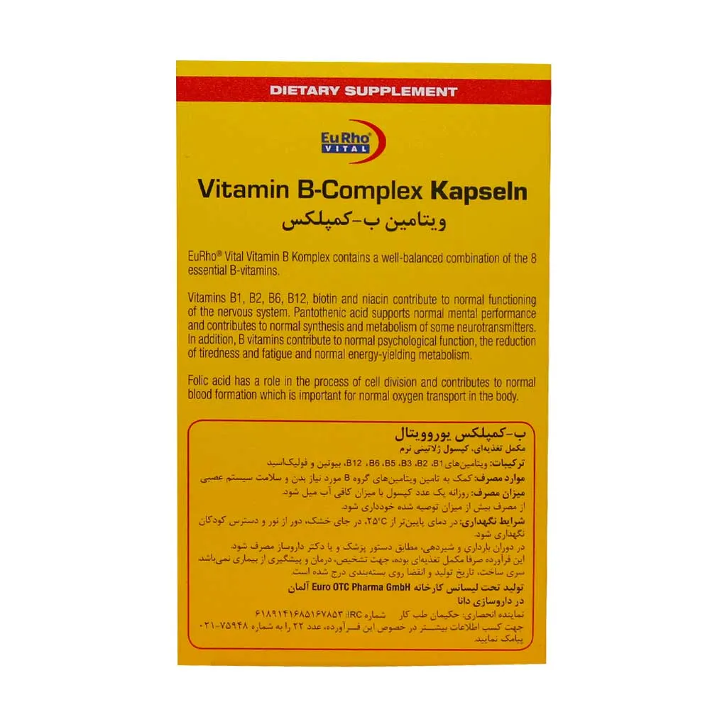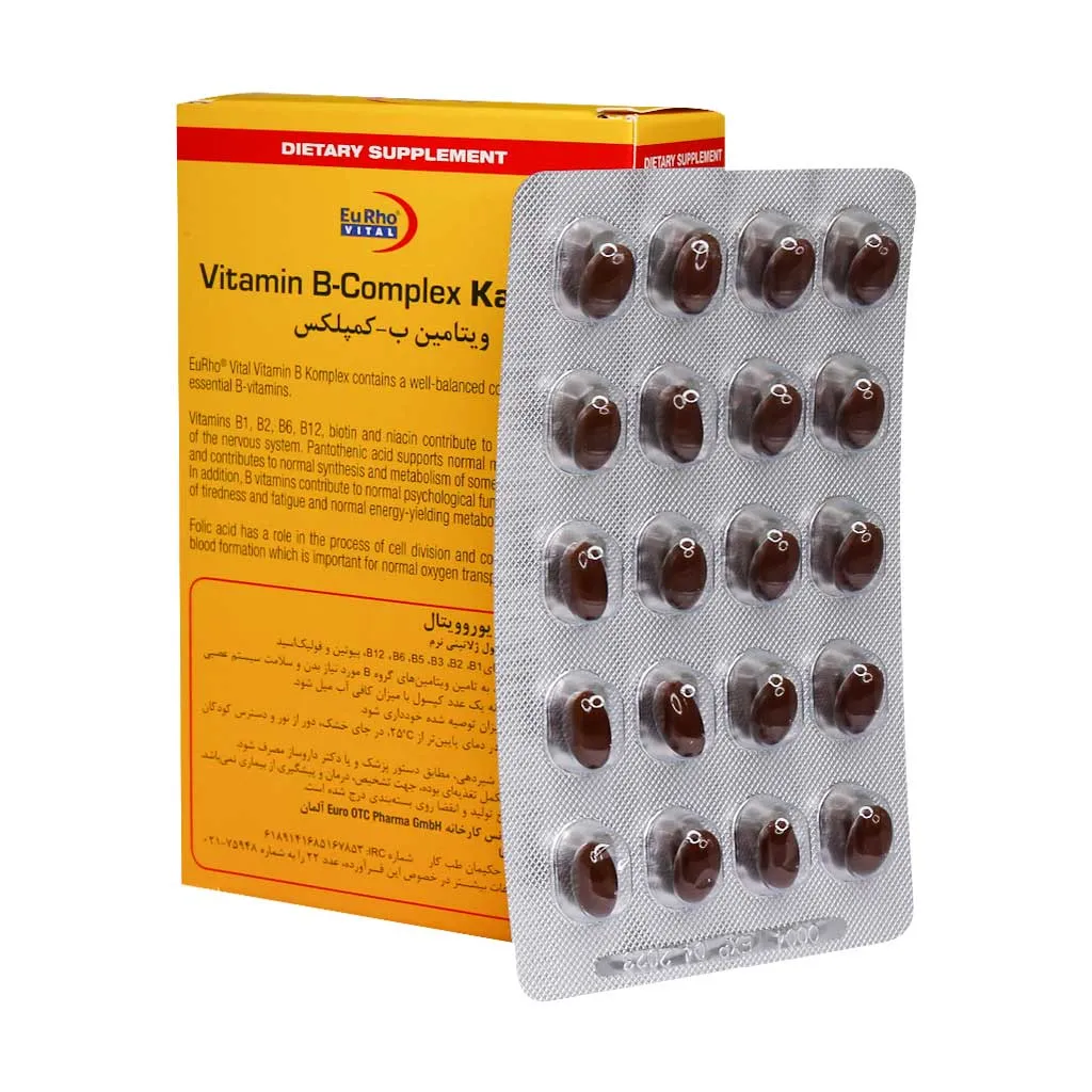 کپسول ویتامین ب کمپلکس یوروویتال یک مکمل غذایی باکیفیت، تولیدشده تحت لیسانس آلمان و ساختهشده در ایران است که با تأمین کامل ویتامینهای گروه B، نقش مهمی در سلامت سیستم عصبی، خونسازی، متابولیسم انرژی و عملکرد ذهنی ایفا میکند.